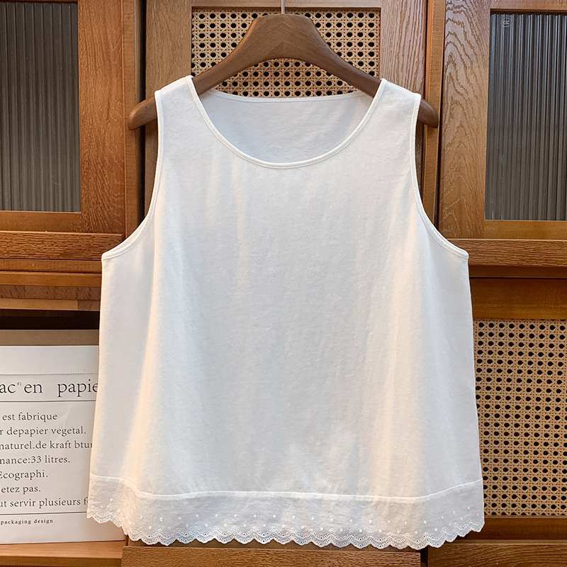 非常に多用途なレースのベスト外国貿易シンプルな綿洗い綿ルーズカジュアル Tシャツレディーストップス