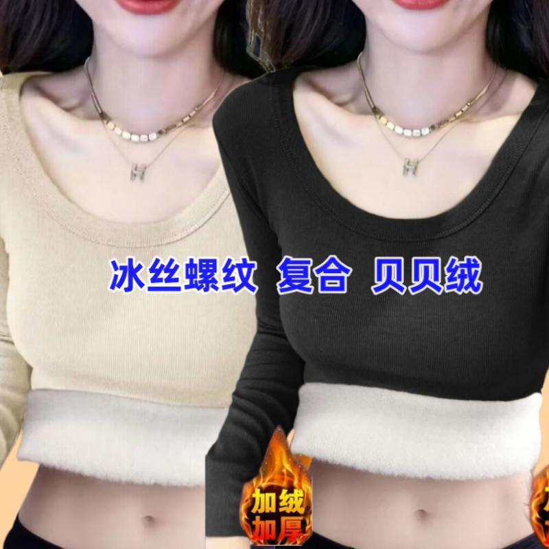 冬の保温下着の女性とベルベットの厚いサイズの太ったMMの中には、シャツの丸首の長袖tシャツの上着がついています