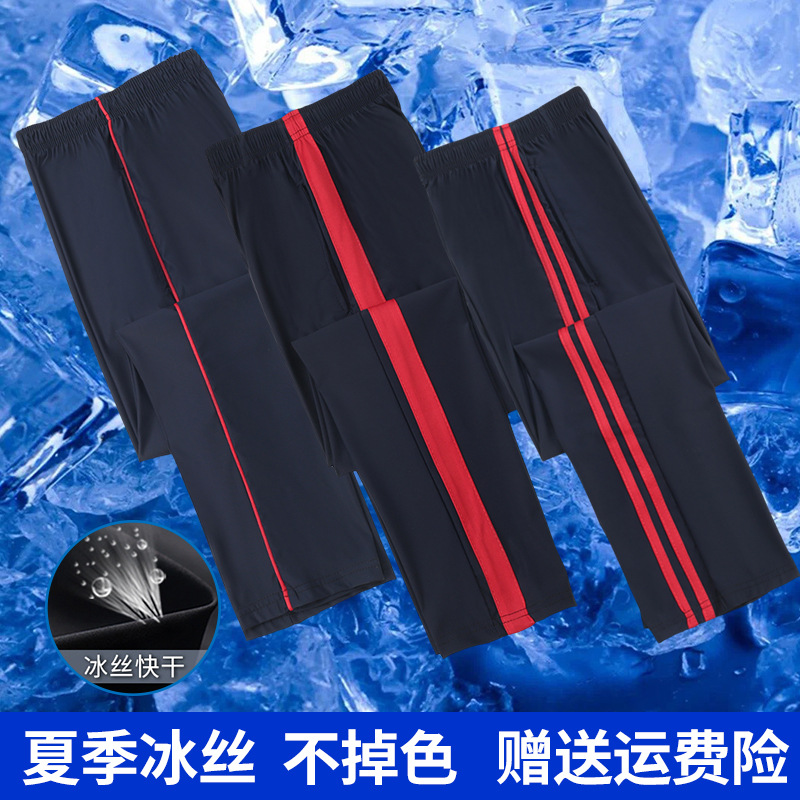 小学校制服パンツ アイスシルク 夏 ネイビーブルー 1本2本ストライプ 中学生 スポーツパンツ 極薄 速乾