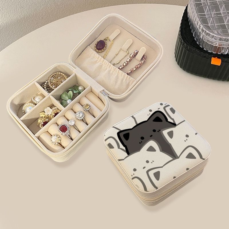 ニッチジュエリーボックス、ポータブルでコンパクトなイヤーボーンネイル、イヤークリップ、ネックレス、リング、ジュエリーボックス、分割された抗酸化収納ボックス