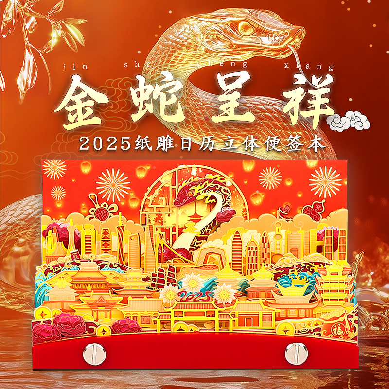 2025蛇年カレンダー創意卓上カレンダー新年プレゼントビジネス記念プレゼント紙彫刻置物3d立体便箋本