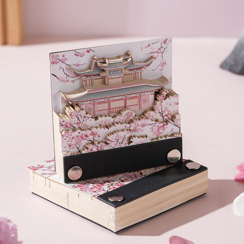 カスタマイズされた 3D プリント彫刻桜マン清川閣立体手で切れるノートクリエイティブ桜建築文化創造的なお土産ギフト
