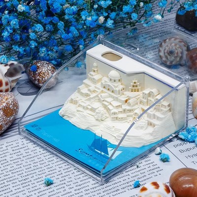 文創プレゼントins七夕520は彼女にバレンタインデーの紙彫刻メモサントリーニ立体模型のアイデアを送ります。