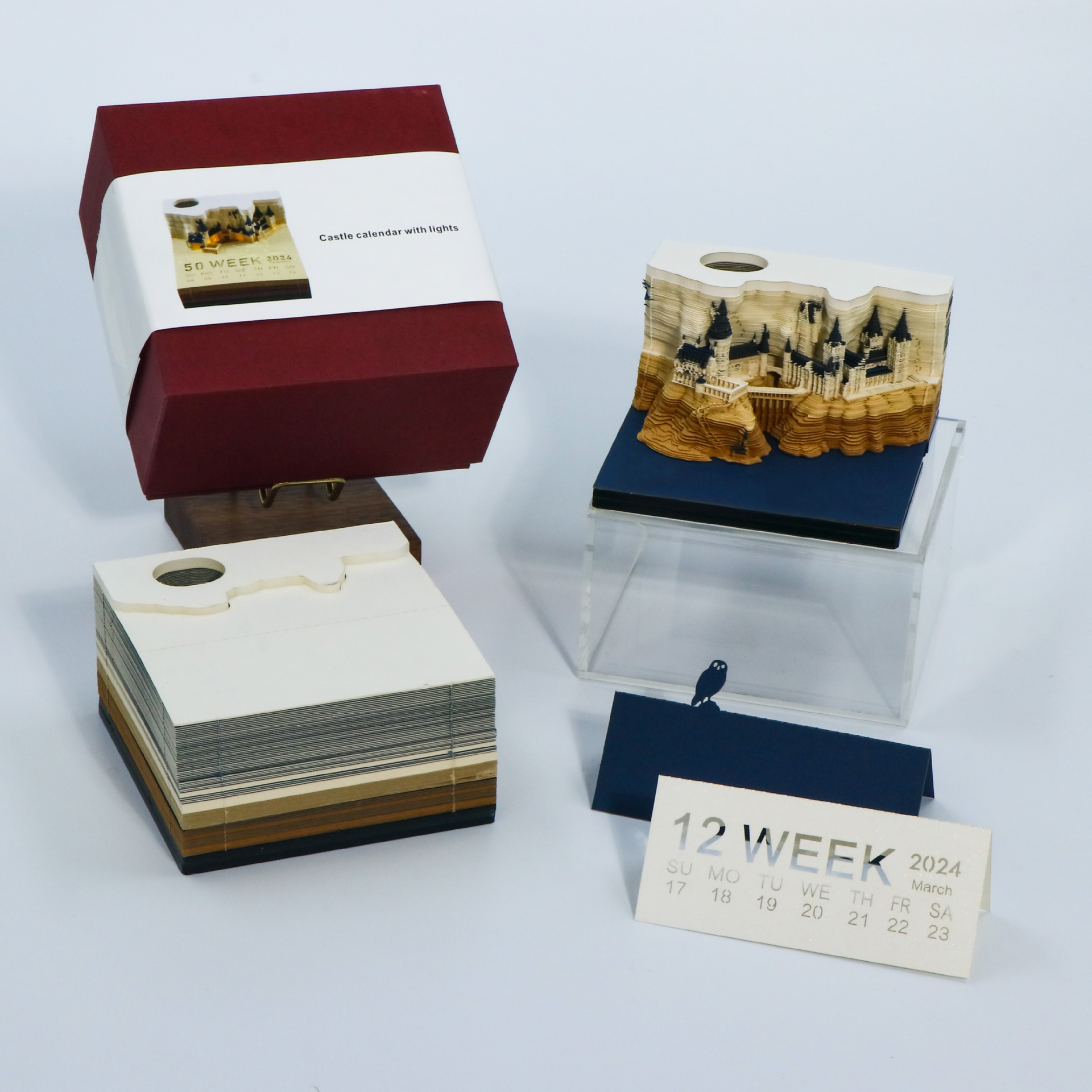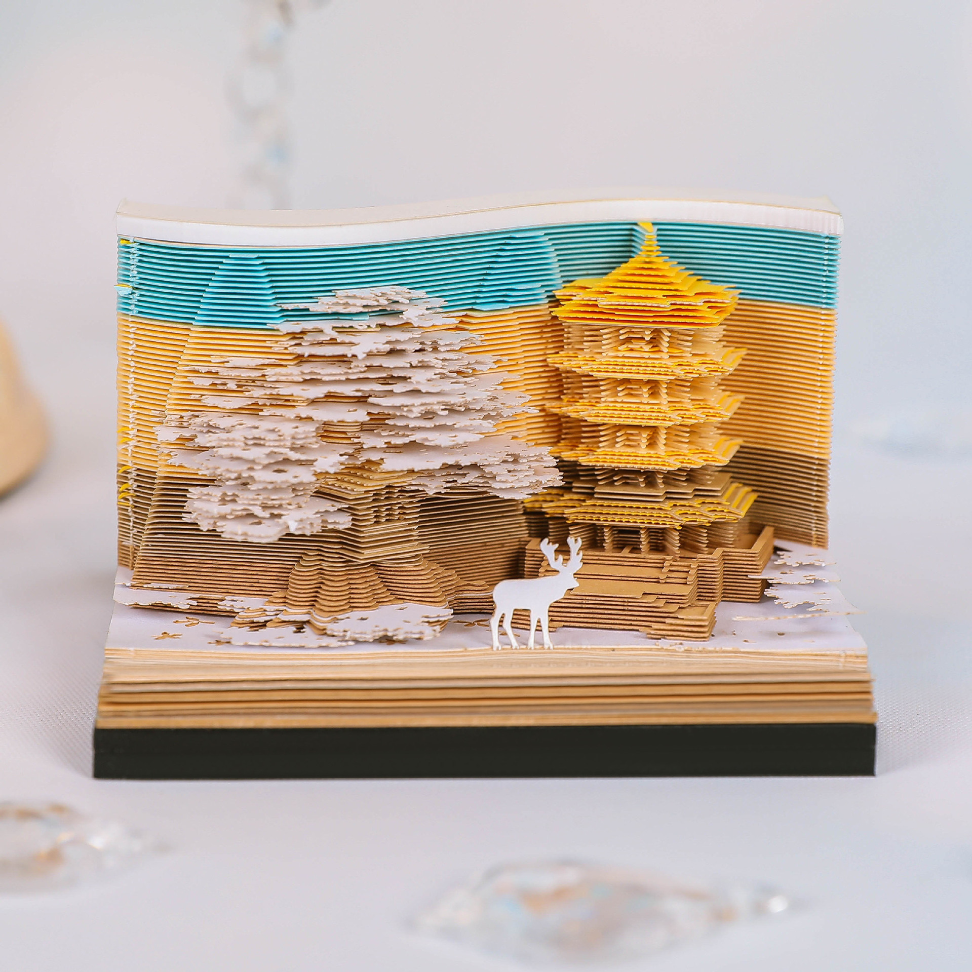 2024新型パノラマ紙彫刻カレンダー樹屋3d立体模型付箋紙手裂き企業創意立体卓上カレンダー