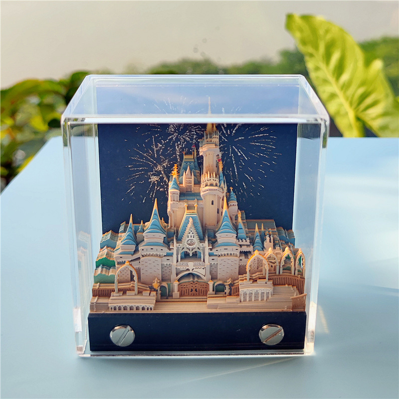 シンデレラのロマンチックな夢の城、ライト付き紙彫刻、3D立体メモ用紙、破れる、ボーイフレンドとガールフレンドへの誕生日プレゼントとして