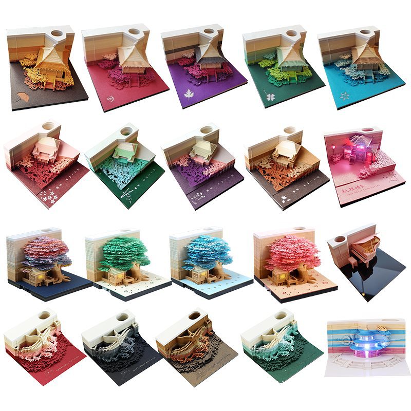 クロスボーダー工場付箋3D立体付箋モデル四季樹屋誕生日祝日創意プレゼント手裂き紙彫刻