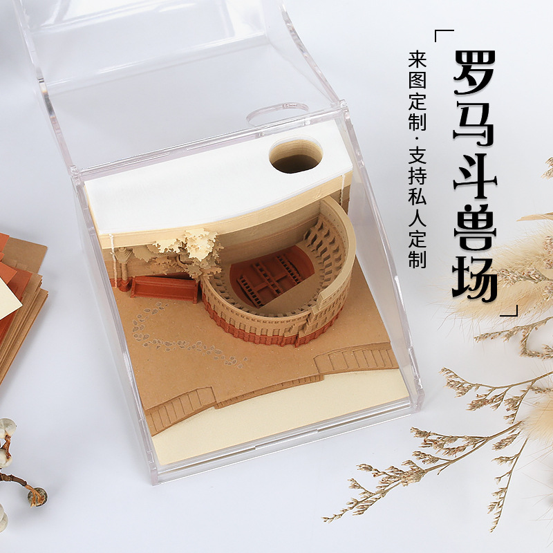 ローマ闘獣場創意3d立体付箋紙樹屋亭子紙彫刻紙工芸品プレゼント