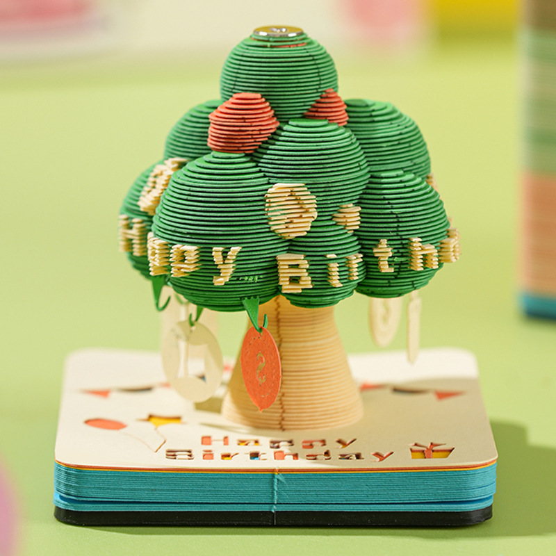 3D紙彫刻ウィッシングツリー立体ノートブックアートワークは手で切れる卓上カレンダー高価値付箋文化的で創造的なギフト