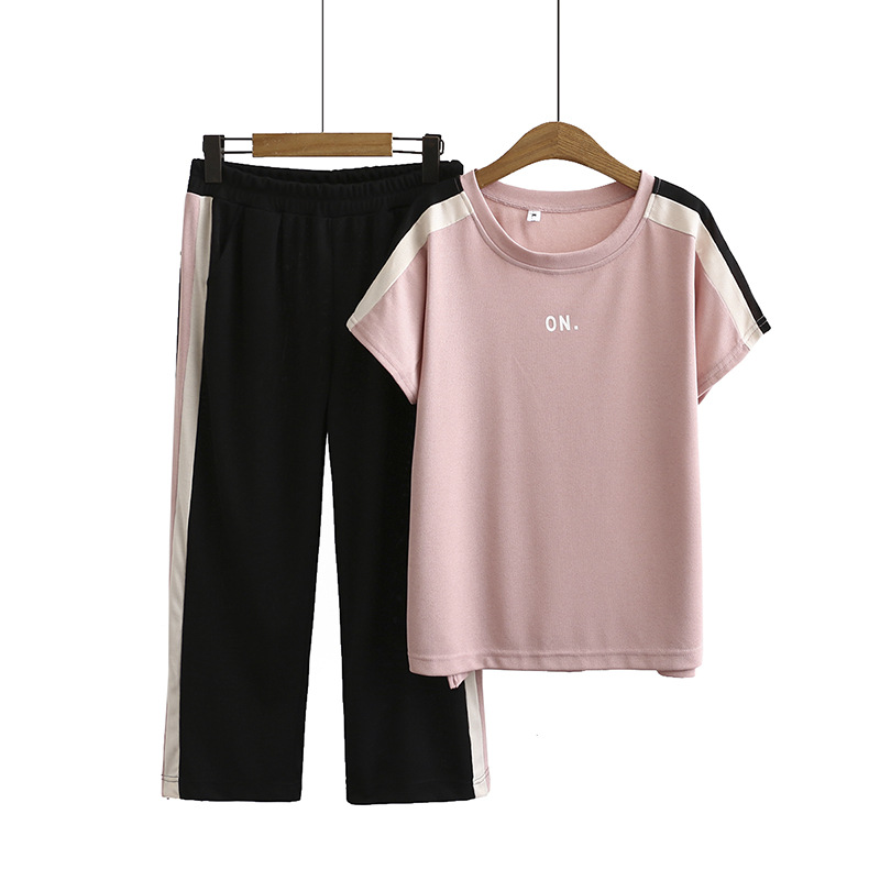 中年ママサマースーツ半袖Tファッション外国風年齢軽減アイスシルクスポーツスーツレディースドレープカジュアル2点セット