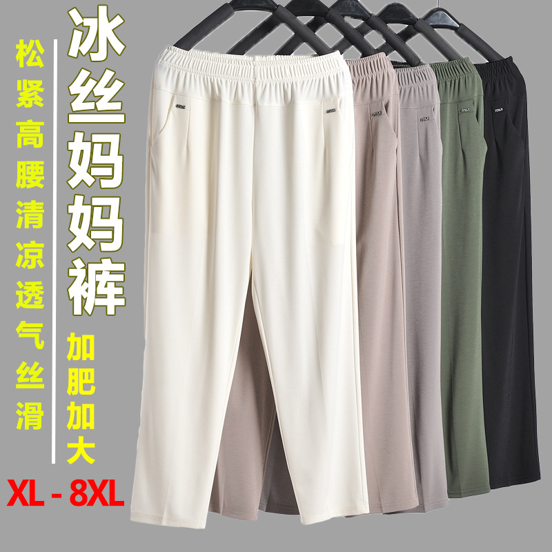ママパンツ 夏用 薄手アイスシルク 9点パンツ 中高年女性 プラスサイズ ゆったり おばあちゃん ストレートパンツ