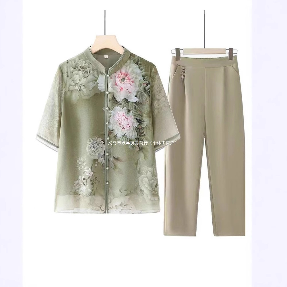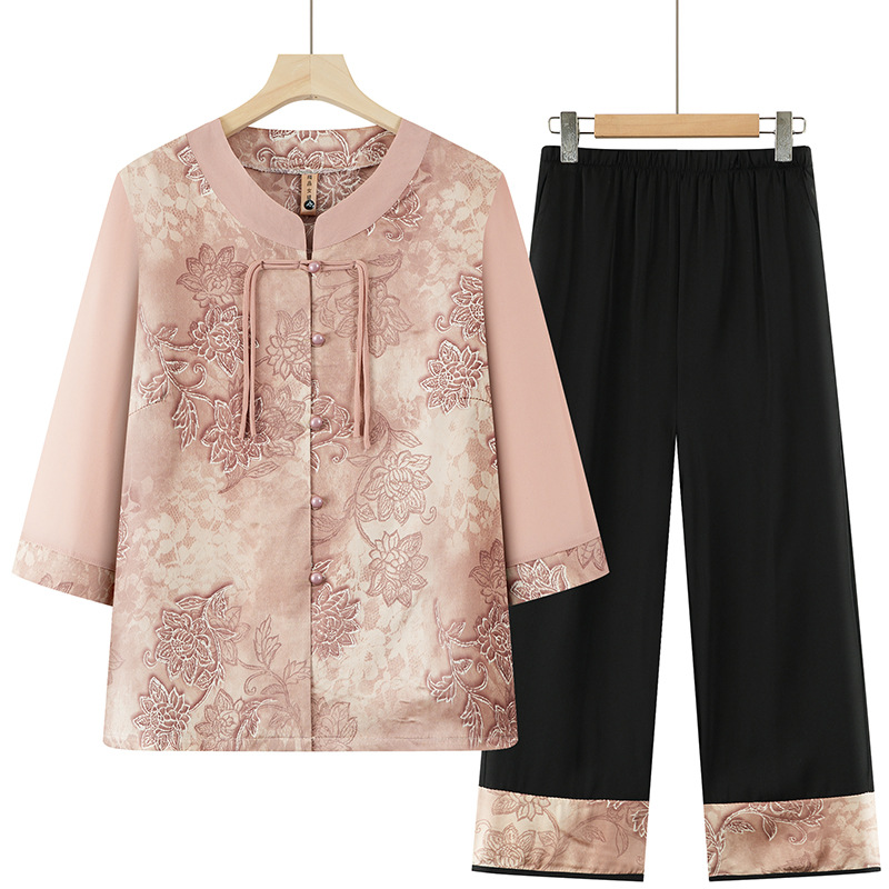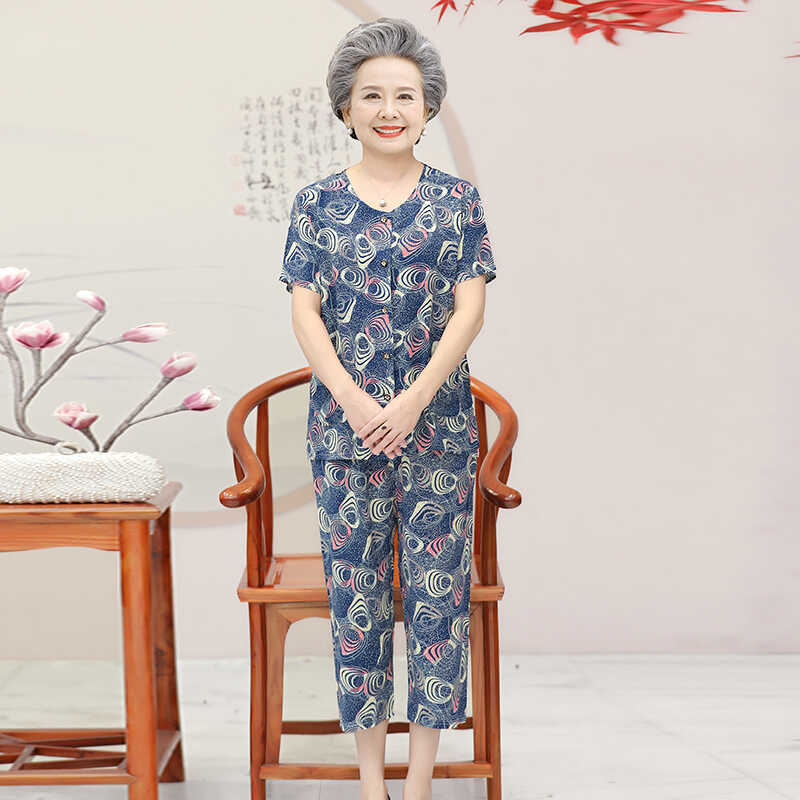 おばあちゃんの夏スタイルスーツ、中高年女性、母親の夏服、カジュアルな七分袖服