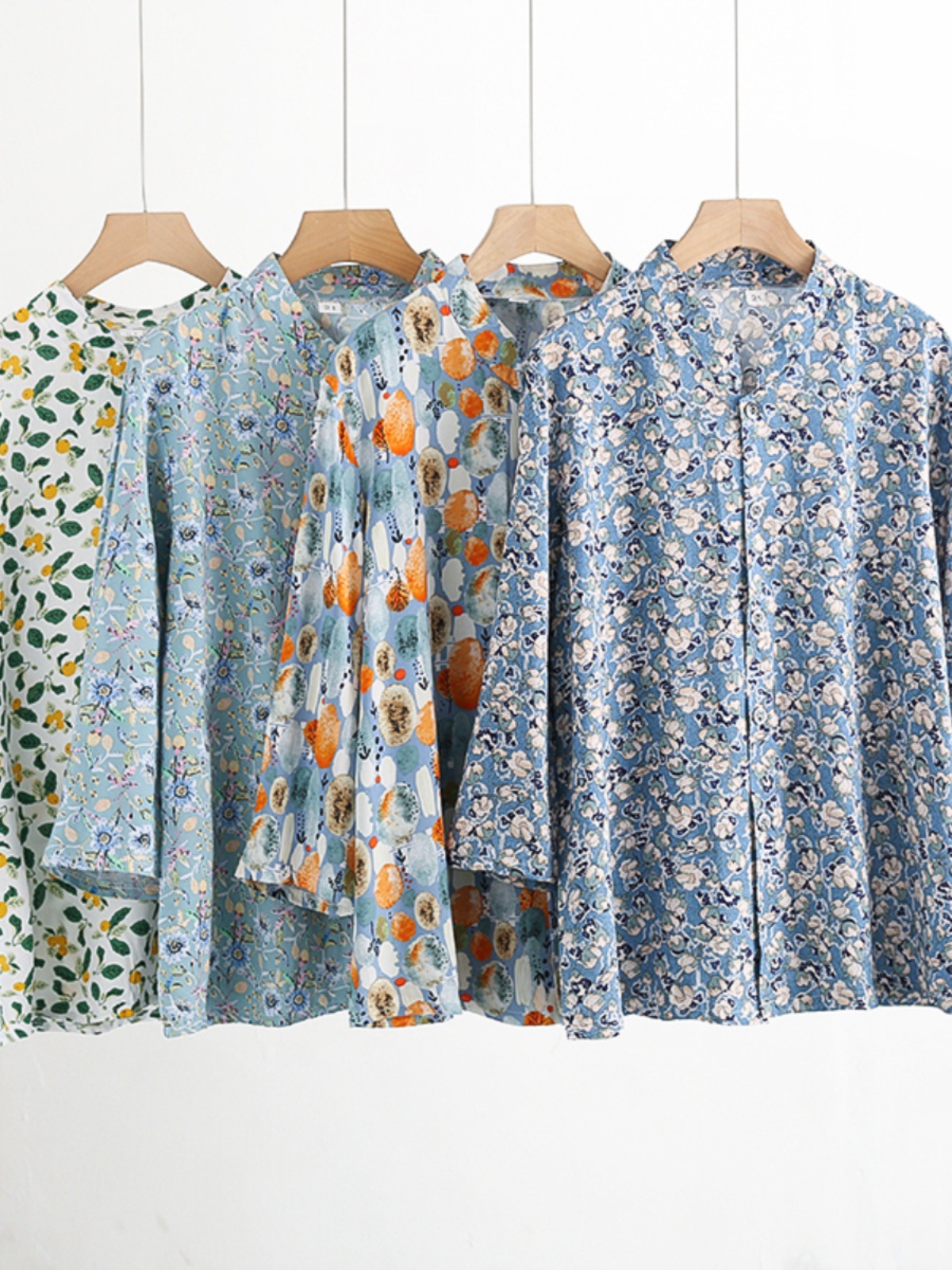 老婦人夏薄手シャツ7080歳おばあちゃん唐スーツトップス大きいサイズ高齢者服女性カーディガンスタンドカラー