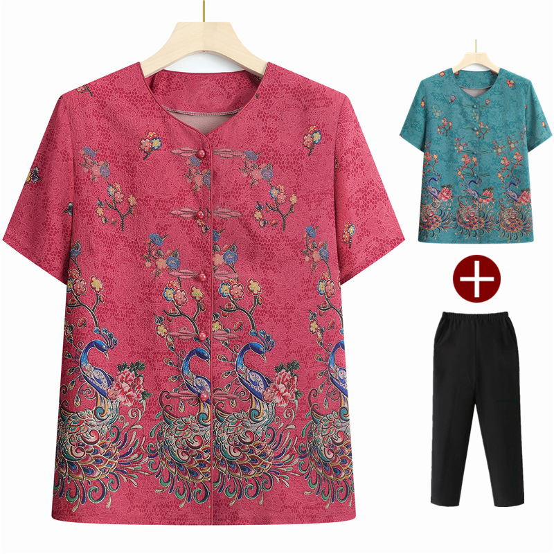 新しいおばあちゃんの夏の半袖シャツ、70~80歳の女性のカーディガン、高齢者の母親のスーツ
