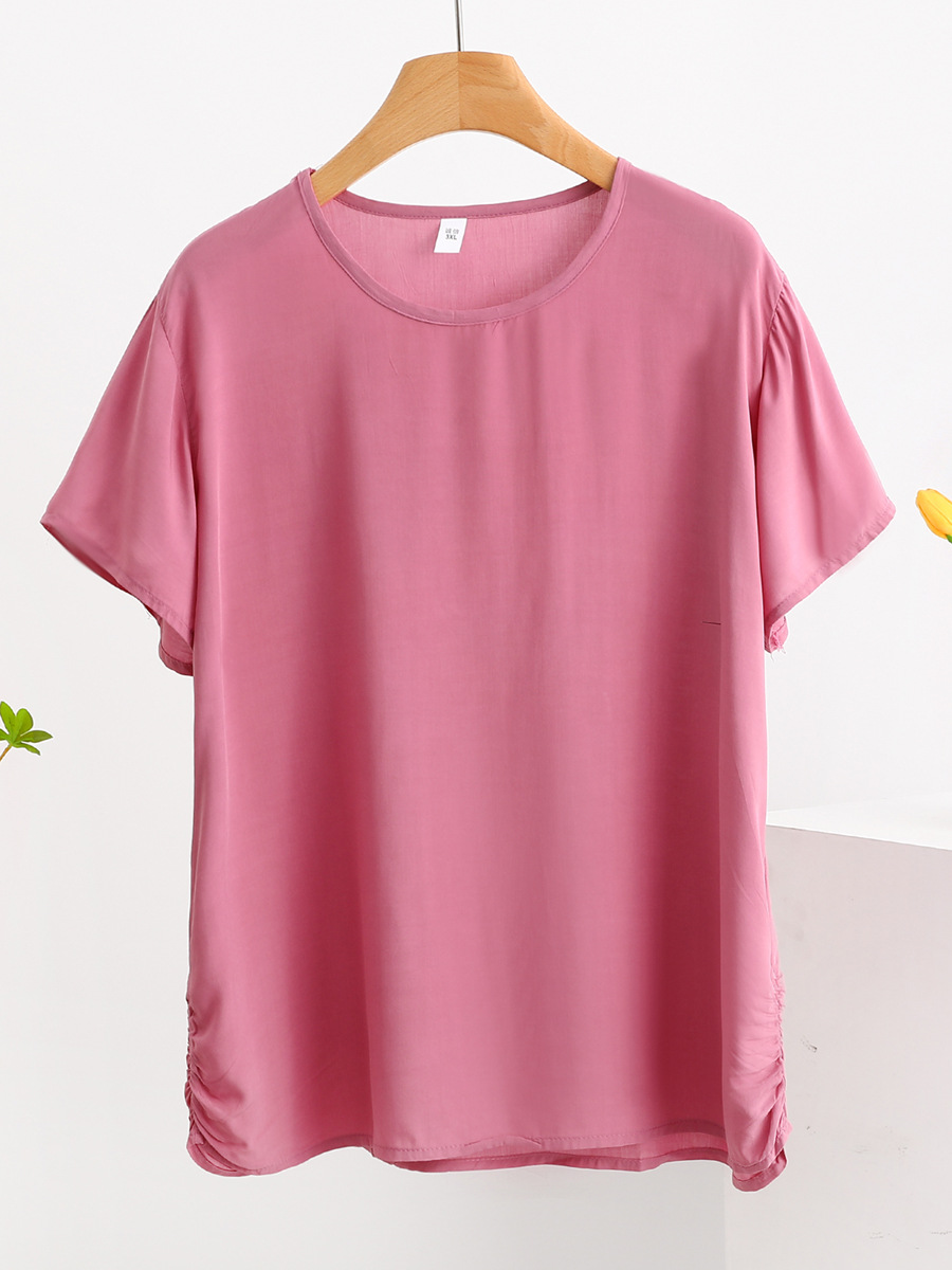 中高年女性向けの純綿シルクTシャツ、夏用大きいサイズプラスファットカジュアル半袖薄手のレーヨントップス
