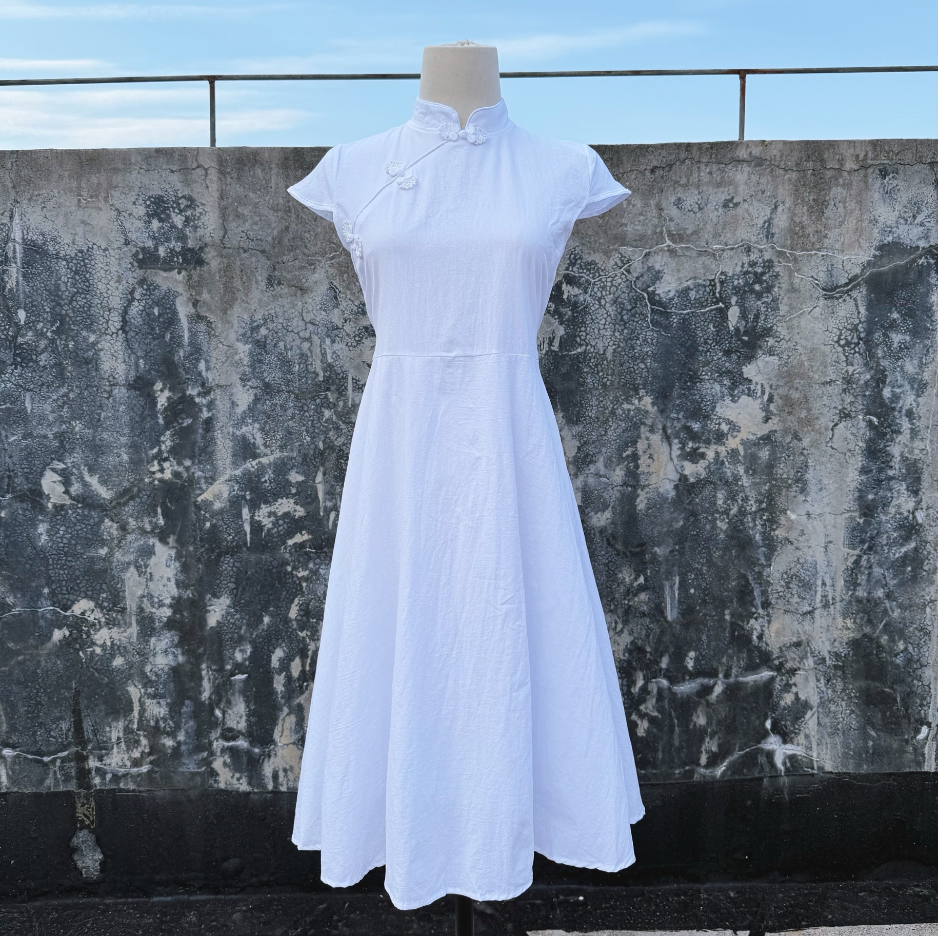 レディースドレス、白いスカート、2025年大きな裾のスカート、チャイナドレス、母親のドレス、裏地付きの絞り染めの古代衣装のスカート