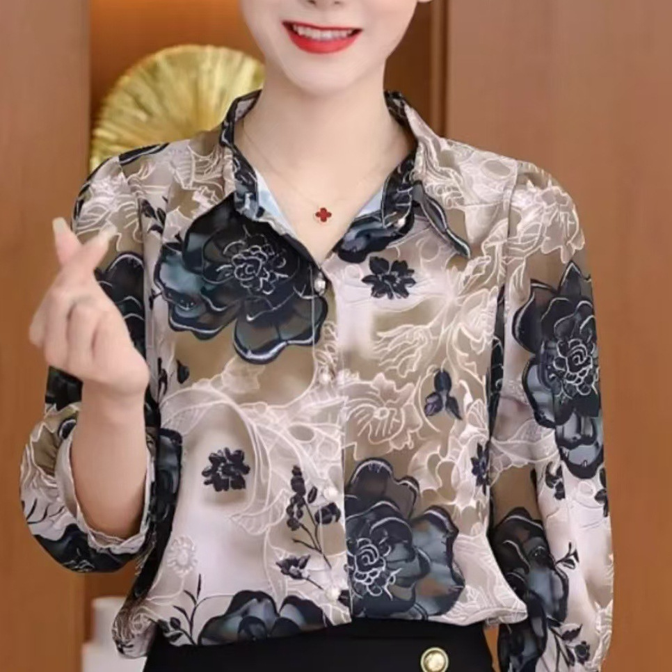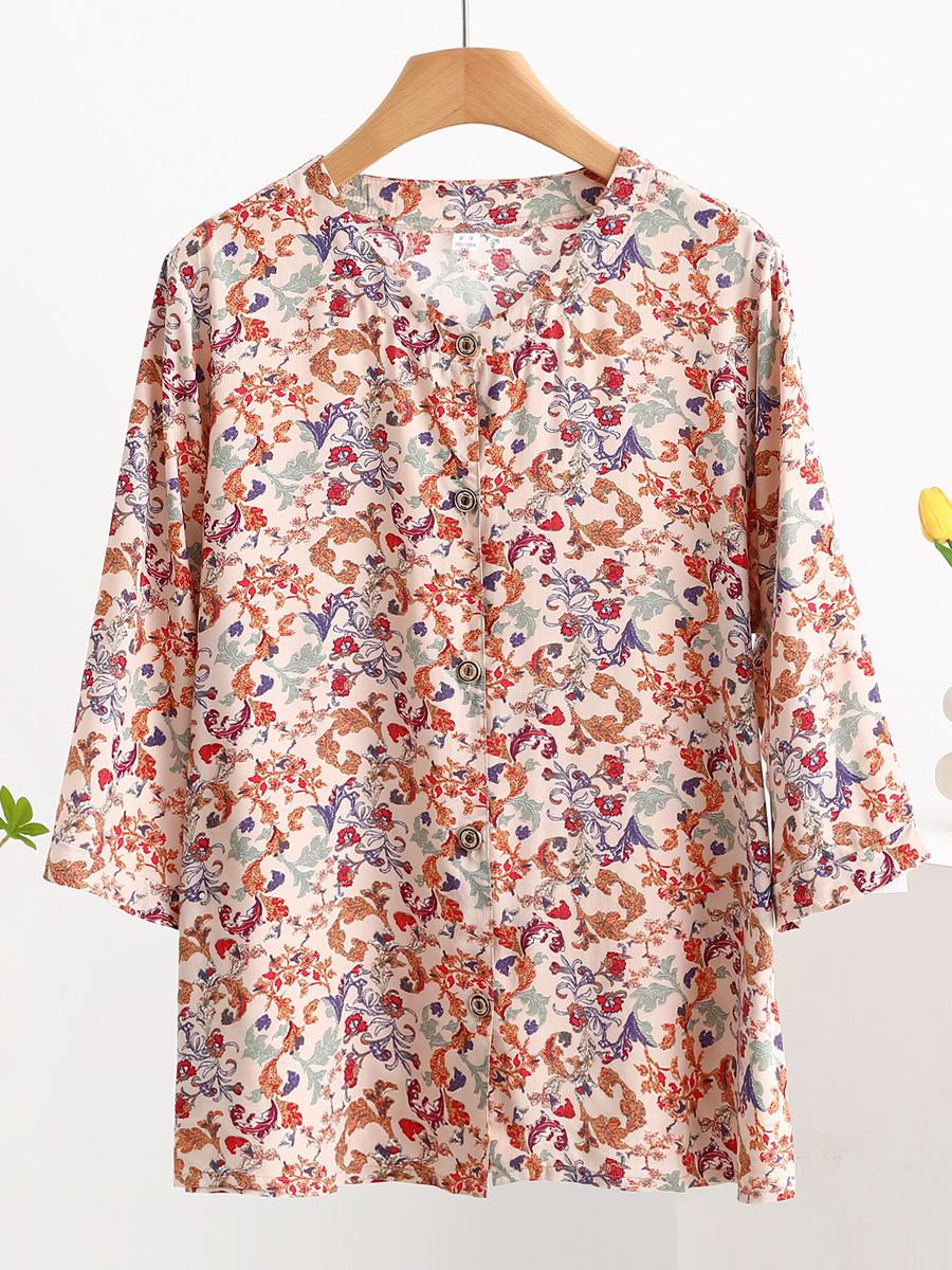 お母さんの春の服の7分の袖の気質の小さいシャツの中で老年の女性の春夏のシャツの洋風の百合2025の新しい洋風の上着