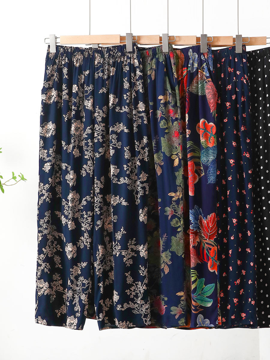 夏のアイスシルクパンツとスカート、ゆったりとしたサイズ、150kg ファッションプリント、西洋スタイル、年齢を減らすカジュアルパンツ、ドレープパンツ