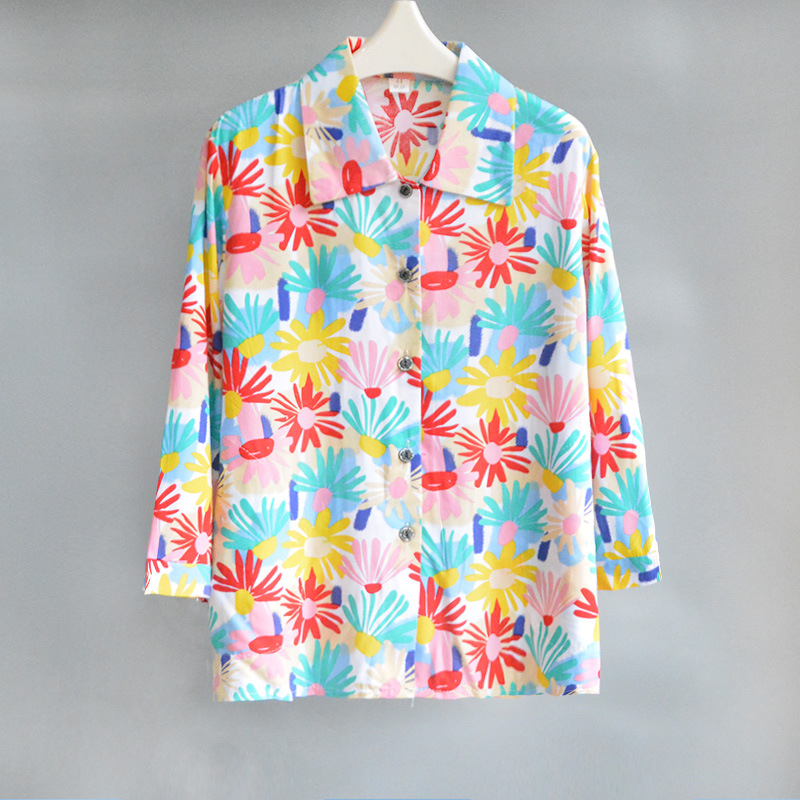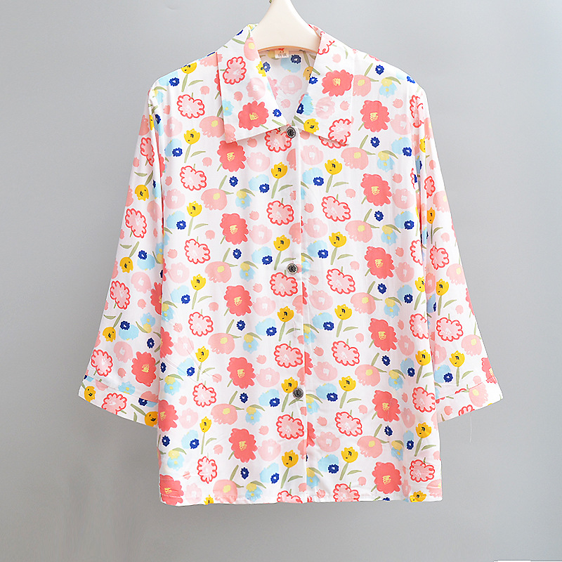 おばあちゃんの夏の綿シルクシャツトップス女性のルーズラペル高齢者の服カーディガン人工綿シルクシャツ