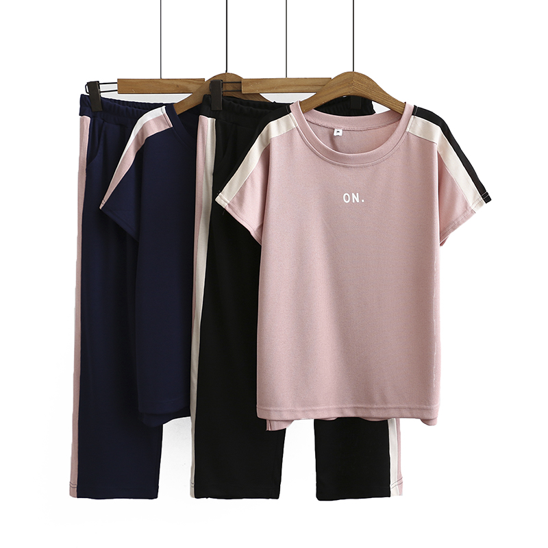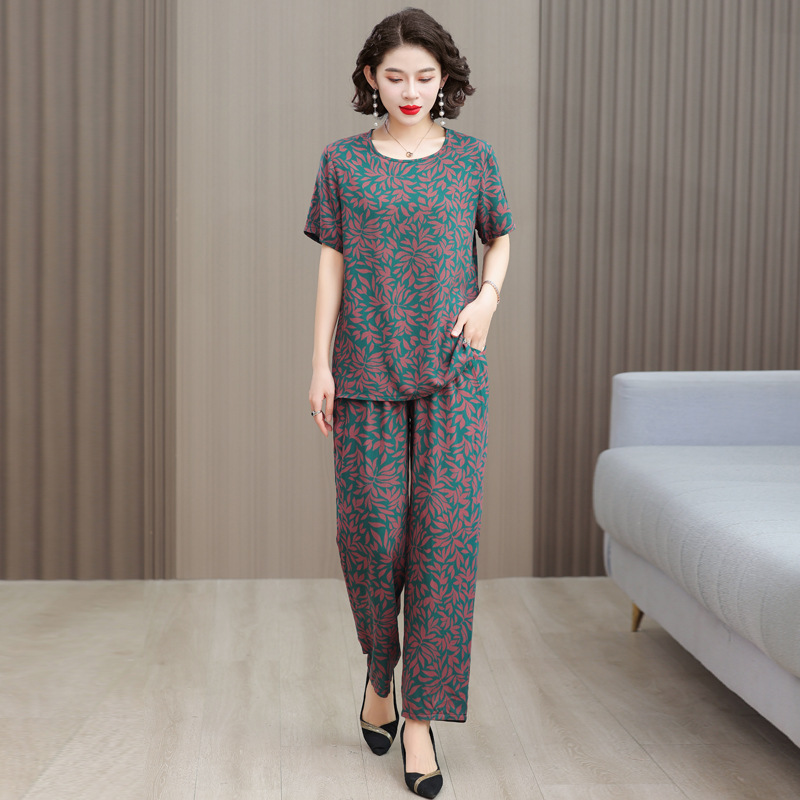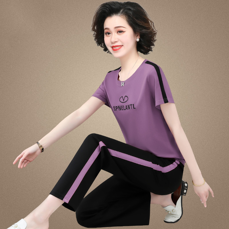 中年夏のスポーツスーツ、おしゃれでスタイリッシュなママカジュアルアイスシルク半袖Tシャツ、夏の婦人服