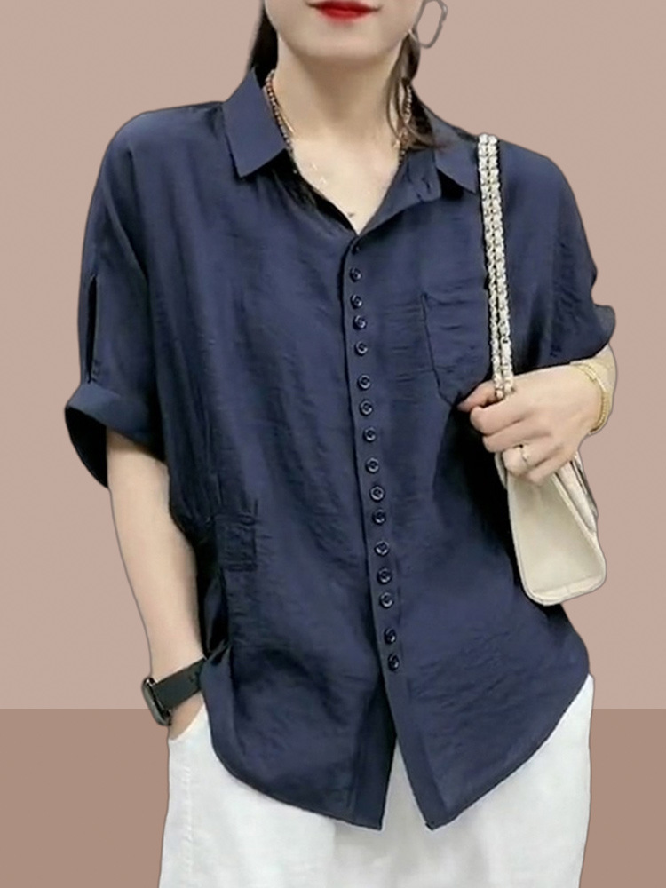 おばあちゃんの夏のシャツ綿シルクトップ女性のルーズスクエアカラー高齢者の服カーディガン人工綿シルクシャツ