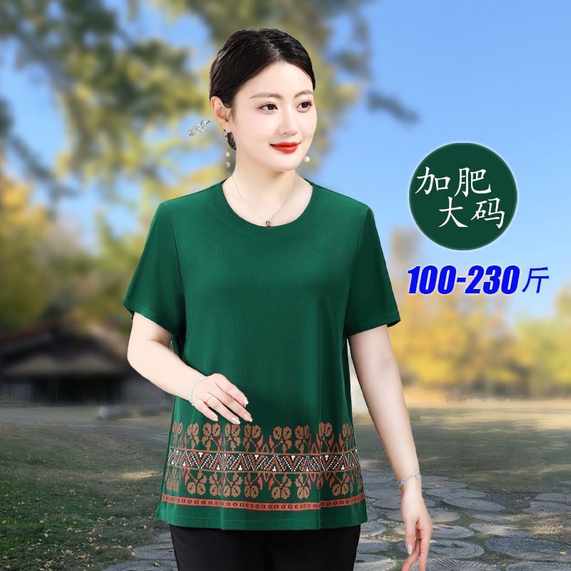2025 外国風中高年女性のアイスシルクボトムシャツ夏半袖Tシャツママゆったりニット薄手トップス