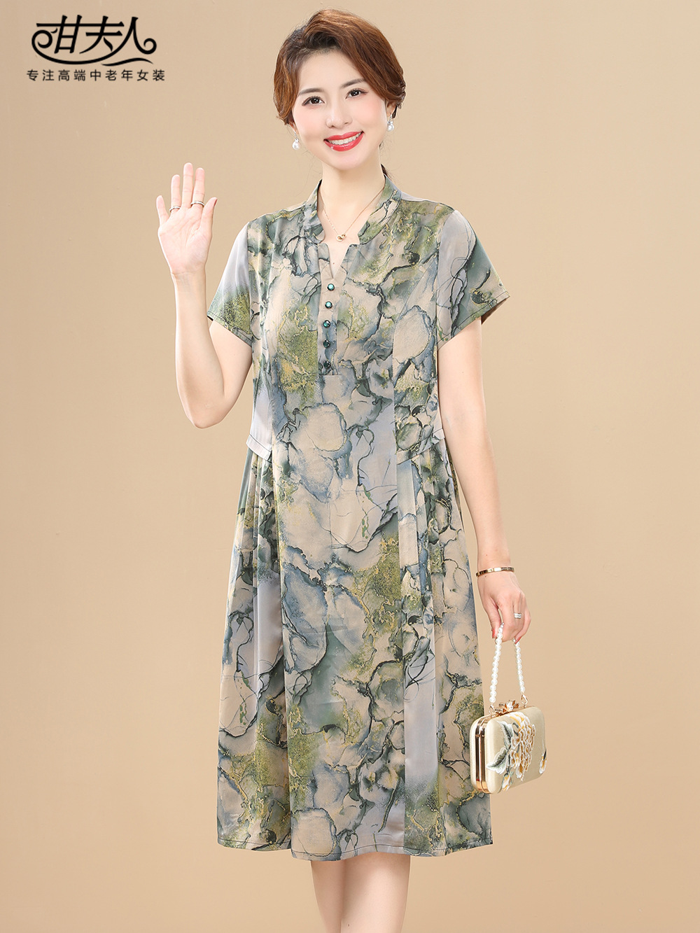 中年母親のサマードレス、気質貴婦人改良チャイナドレス、中高年女性の夏スタイルドレス