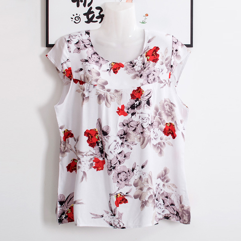 中高年女性の綿シルク半袖トップス、大きいサイズのゆったりママ服、高齢者向け人工綿Tシャツ、夏用ベスト