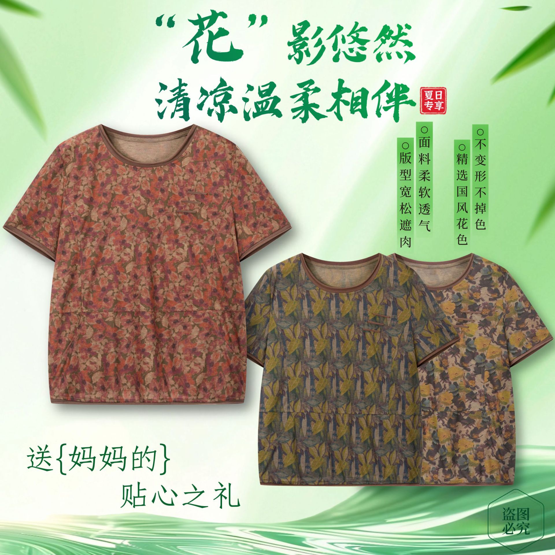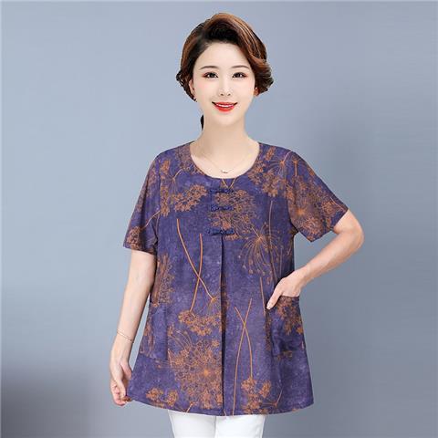 中年ママのサマースーツ、半袖Tシャツ、おしゃれでスタイリッシュな中高年女性服、おばあちゃんのトップス、母の日の服