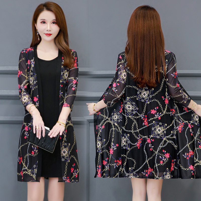 春と秋の新作大きいサイズ 100kg 婦人服ミドル丈ショール付き中高年母親服メッシュレースジャケット