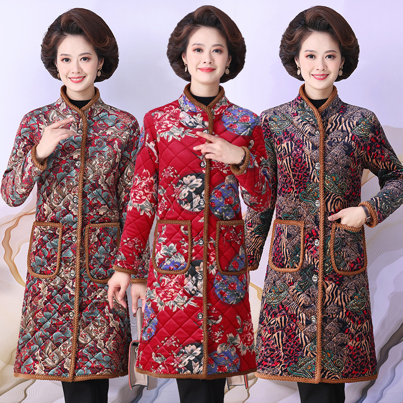 高齢者のベルベットの中の長さの保温綿服60歳のおばあさんの服装はファッション綿服のコートの綿入れを厚くしている