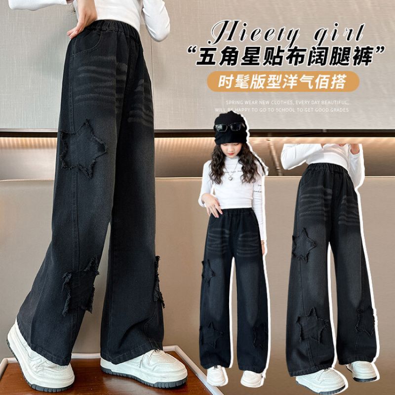 女の子の春と秋の子供中大子供ワイドレッグパンツ2025パンツ新しいルーズパンツ西洋スタイルパンツトレンディなブランド