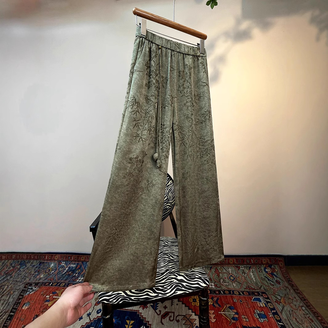 2025春夏新作ジャカードストレートパンツ富貴竹新中国風オーディション生地フリンジウエストパンツ