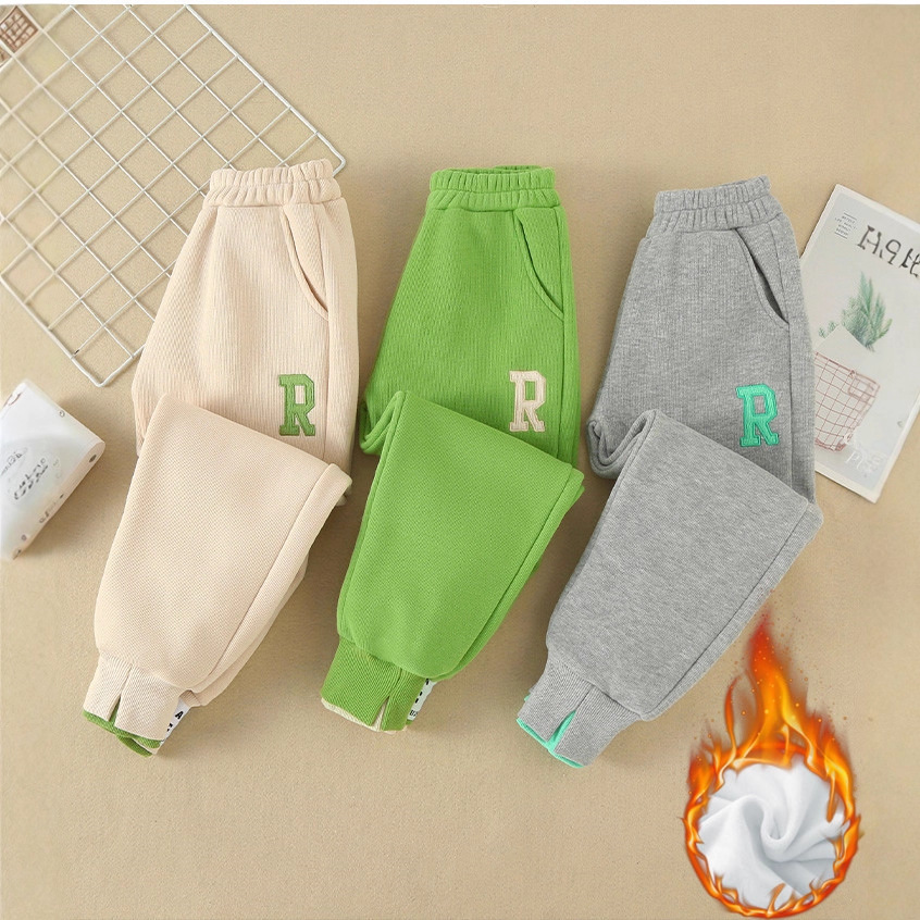 子供用ベルベット厚手ズボン秋冬モデル一体羊小毛男子綿ズボン冬外着少女運動衛ズボン
