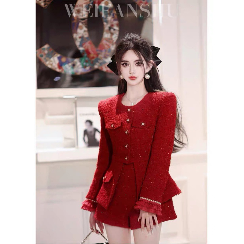 実物撮影 在庫あり 秋冬新作 レッド ラグジュアリー風スーツ おしゃれなデザイン