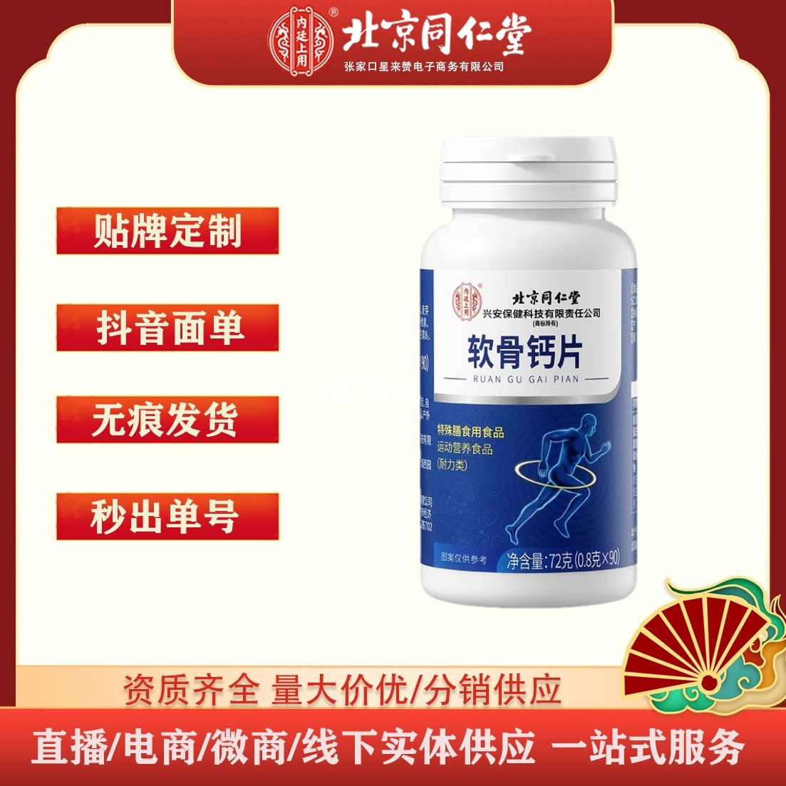 北京同仁堂内廷に軟骨カルシウム片72グラム (0.8グラムx 90) で代理した