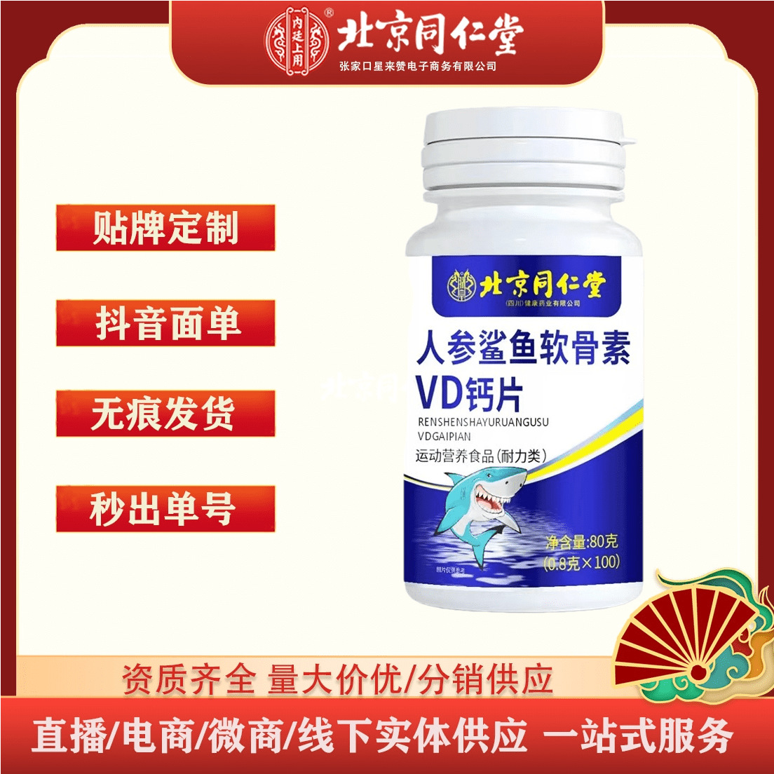 北京銅仁堂 Zhenhuang 高麗人参サメコンドロイチン VD カルシウム錠 80 グラム (0.8*100 錠) ドロップシッピング