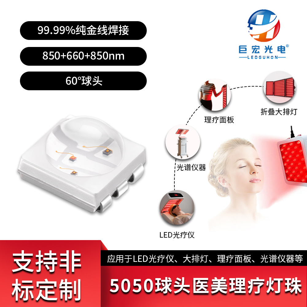 メーカー卸売 5050 ボールヘッドパッチ LED ランプビーズ医療美容理学療法ランプ 660 + 850 + 850nm マルチバンド光源