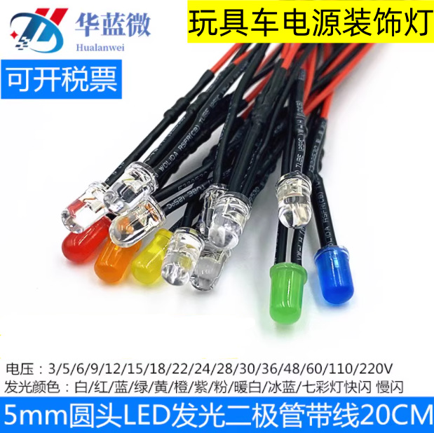 3v-24v線付きled発光ダイオード5mm表示灯電源ランプf5電球線長20センチ装飾ランプ