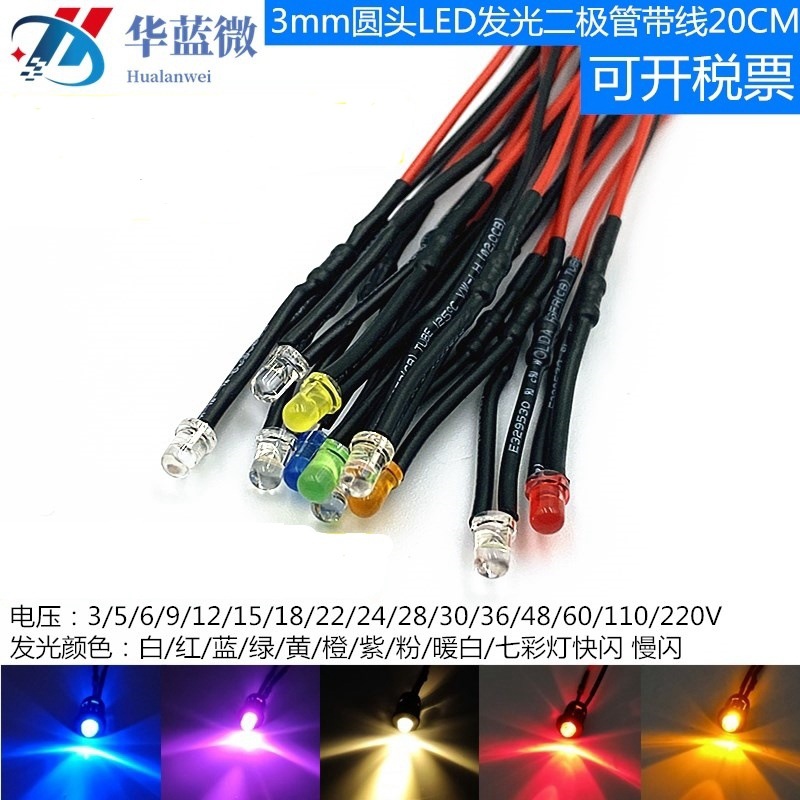 3v 5v 6v 9v 12v線付きled発光ダイオード3mm表示灯電源ランプf 3電球線長20センチ