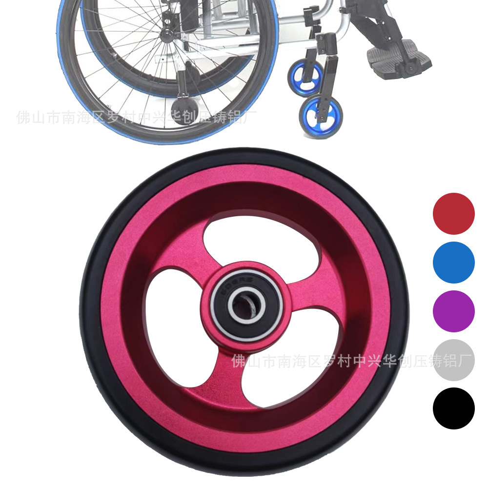 高品質で安価な車椅子前輪 4 インチユニバーサルホイールスポーツ車椅子前輪耐久性のある耐衝撃アルミ合金ホイール