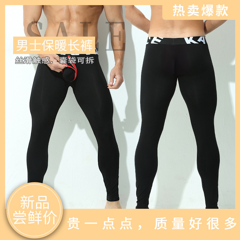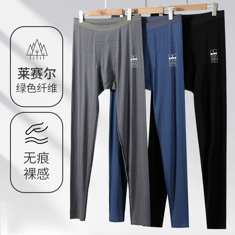 男性の股の開いたズボンの保温ズボンの薄いタイプのレギンスのモーダルの秋のズボンの冬のタイツの中で脱線しないズボンの若いです。