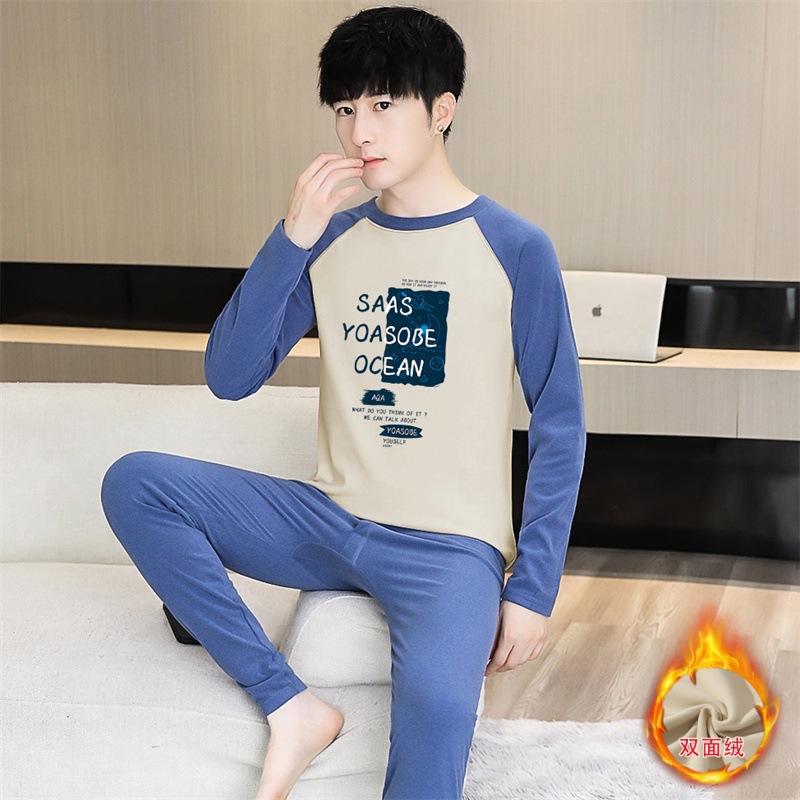 2024保温下着男性陽イオン秋衣秋ズボン丸首青少年学生綿セーターセット