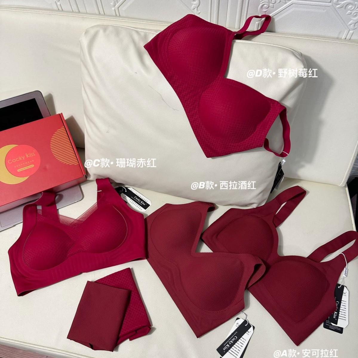VS維蜜新年限定幸運紅彩下着セット乳皮裸感無鋼輪快適プルアップ側収ブラ