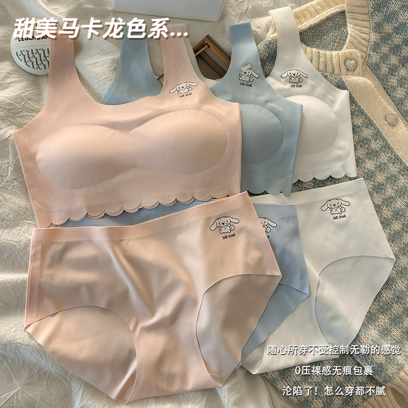 シームレスなアイスシルク下着セット女の子サスペンダースポーツノンワイヤーブラジャー学生プッシュアップ胸露出ベスト
