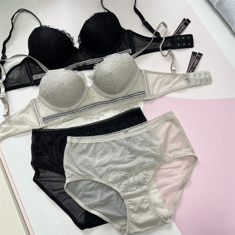 クロスボーダーレース下着セット、アンダーワイヤーブラジャー、2点セット、貿易メッシュ下着、美しいバックセット、スポット卸売