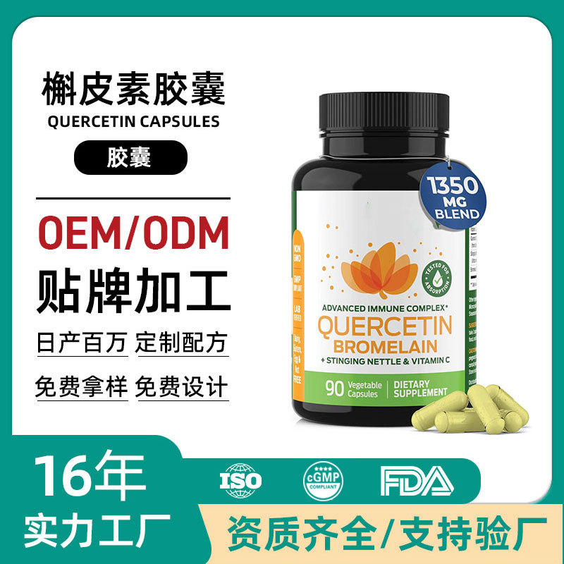源工場 ケルセチン硬カプセル 肺健康サプリメント 跨境ECライブ 海外工場カスタムOEM加工