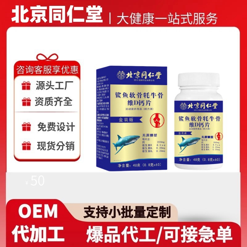 北京同仁堂サメ軟骨消耗牛骨維生Dカルシウム公式旗艦店の正規品