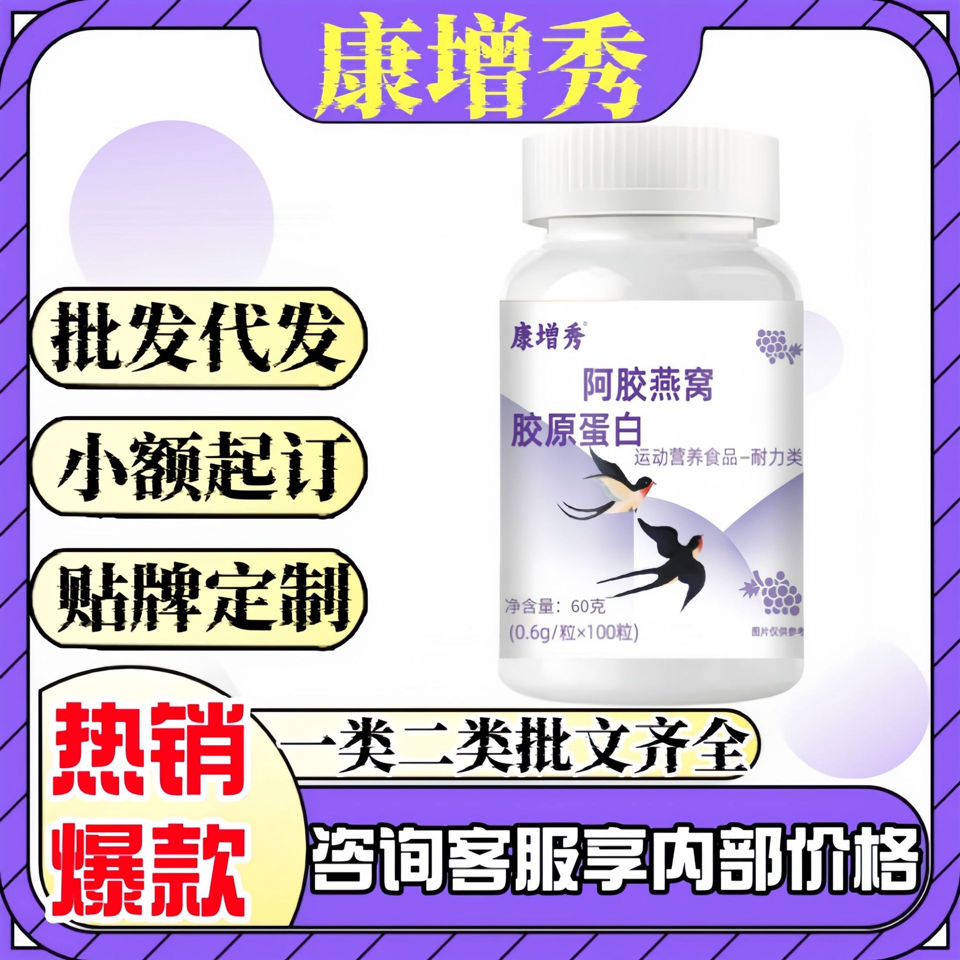 康増秀阿胶燕窩コラーゲン100粒/瓶の代理価格が高い公式正規品旗艦店