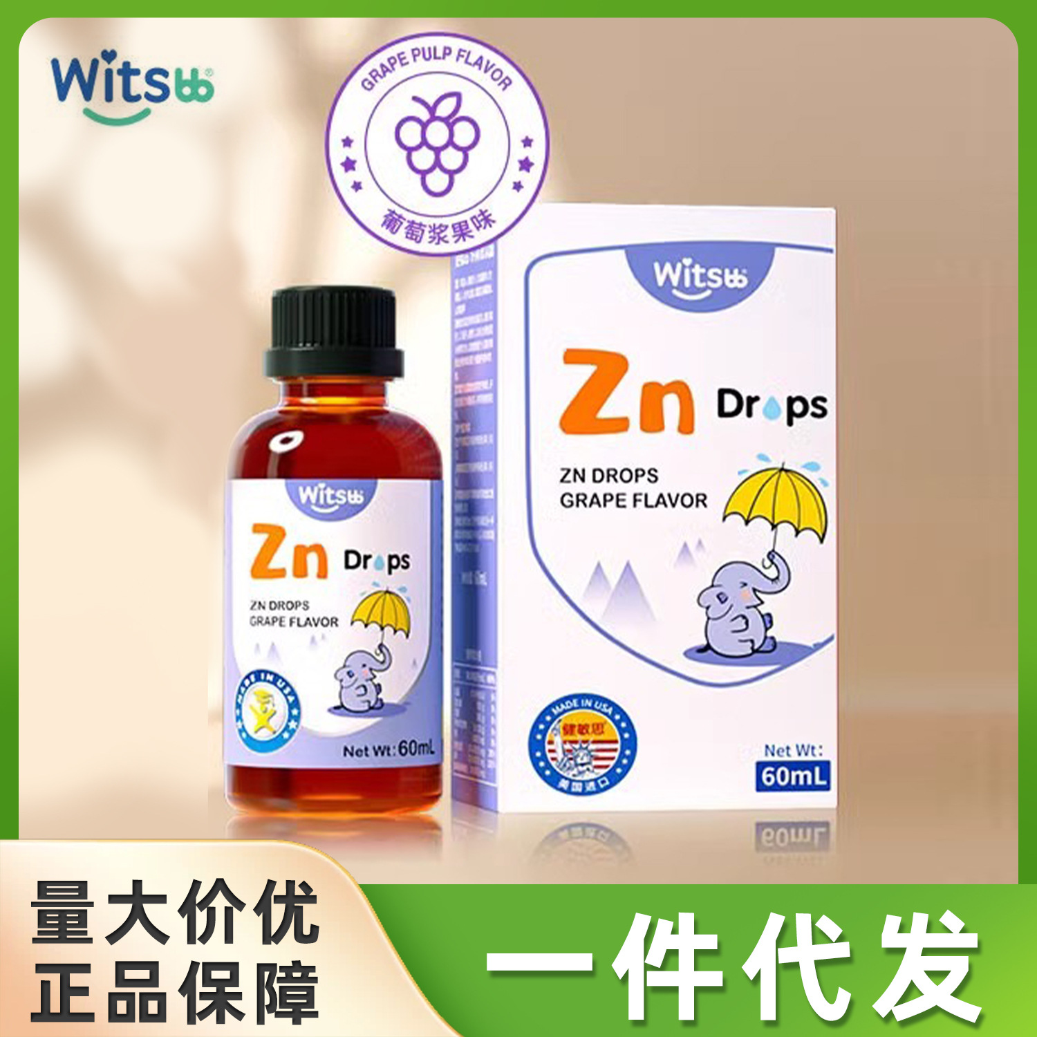 Witsbb健敏思亜鉛滴栄養補充剤複合キレート亜鉛ブドウ味現物代発