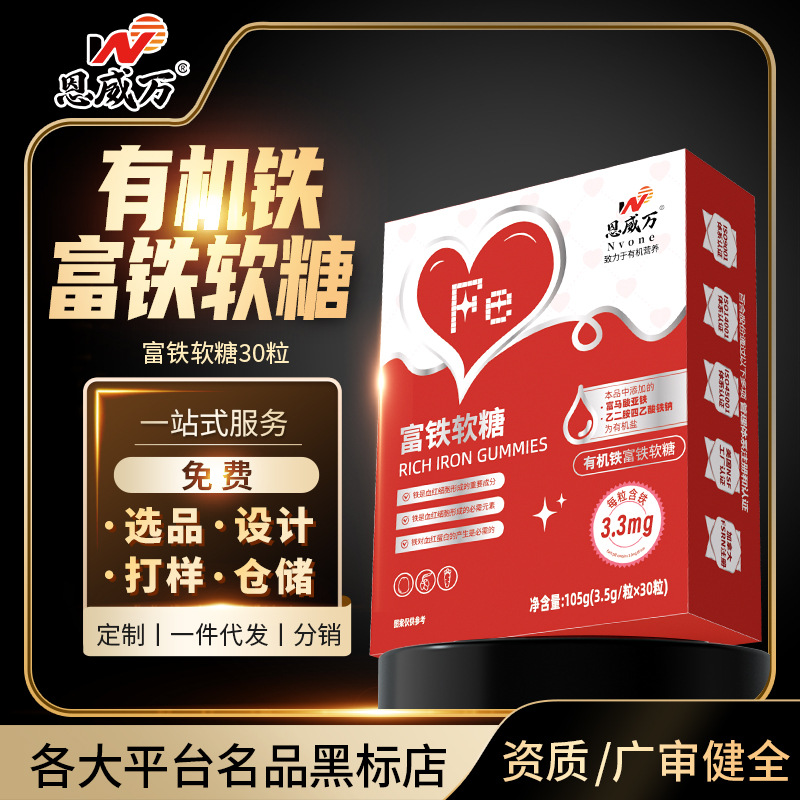 [有機鉄] Enwei Wanfu 鉄グミ 箱入り 30 カプセル 鉄分含有量の高い栄養補助食品卸売